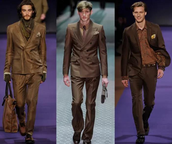 The brown suit has always carried a special tone of elegance and chicness. The chocolate-colored suit can easily be styled with some interesting ideas such as an argyle vest and white button-down shirt. This is a great look for winter. With the addition of chunky boots or loafers, you will get that trendy tone. For the summertime, the cropped top or a bralette and gold jewelry is a look you cannot go wrong with.